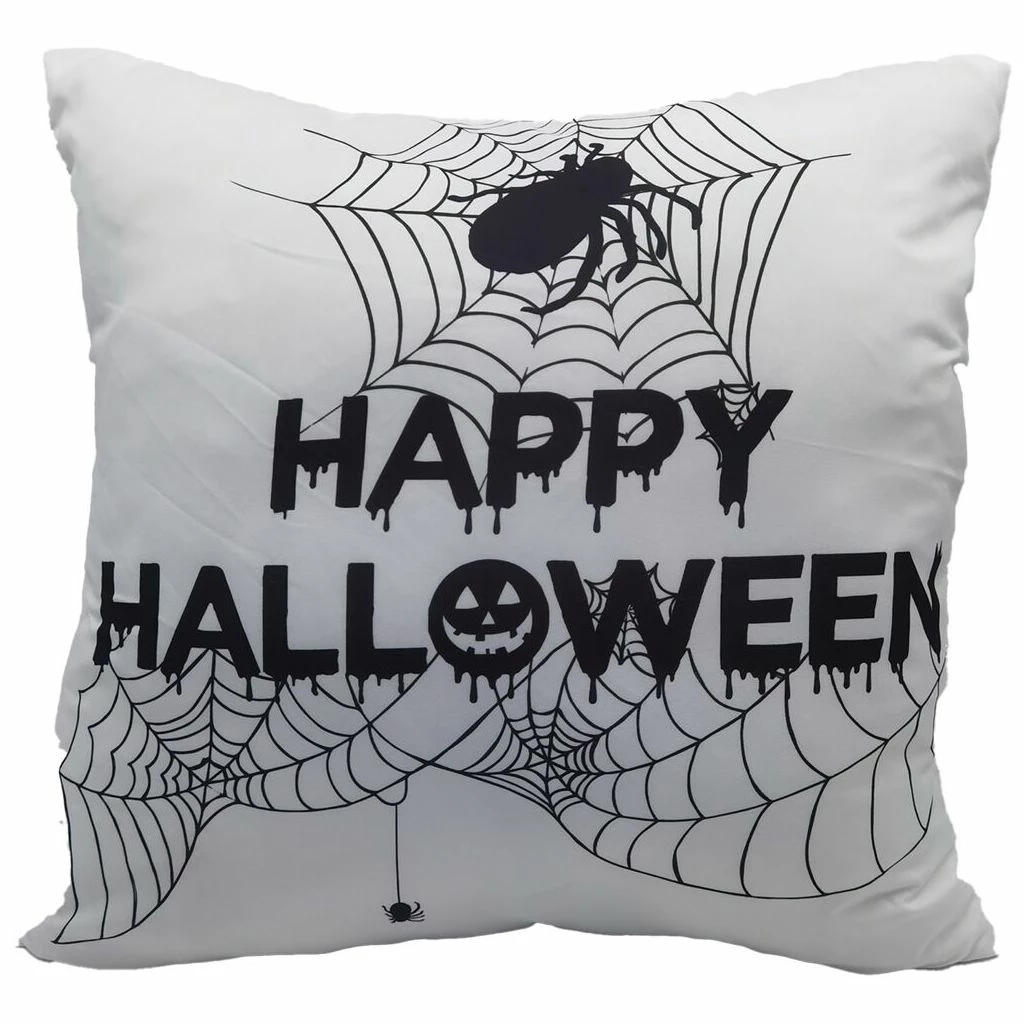 Haunted Hill Farm 15.5 in. Happy Halloween Spider Web Accent Pillow, Indoor Spooky Decoration, White, HHFHLWNPLW-WHT1