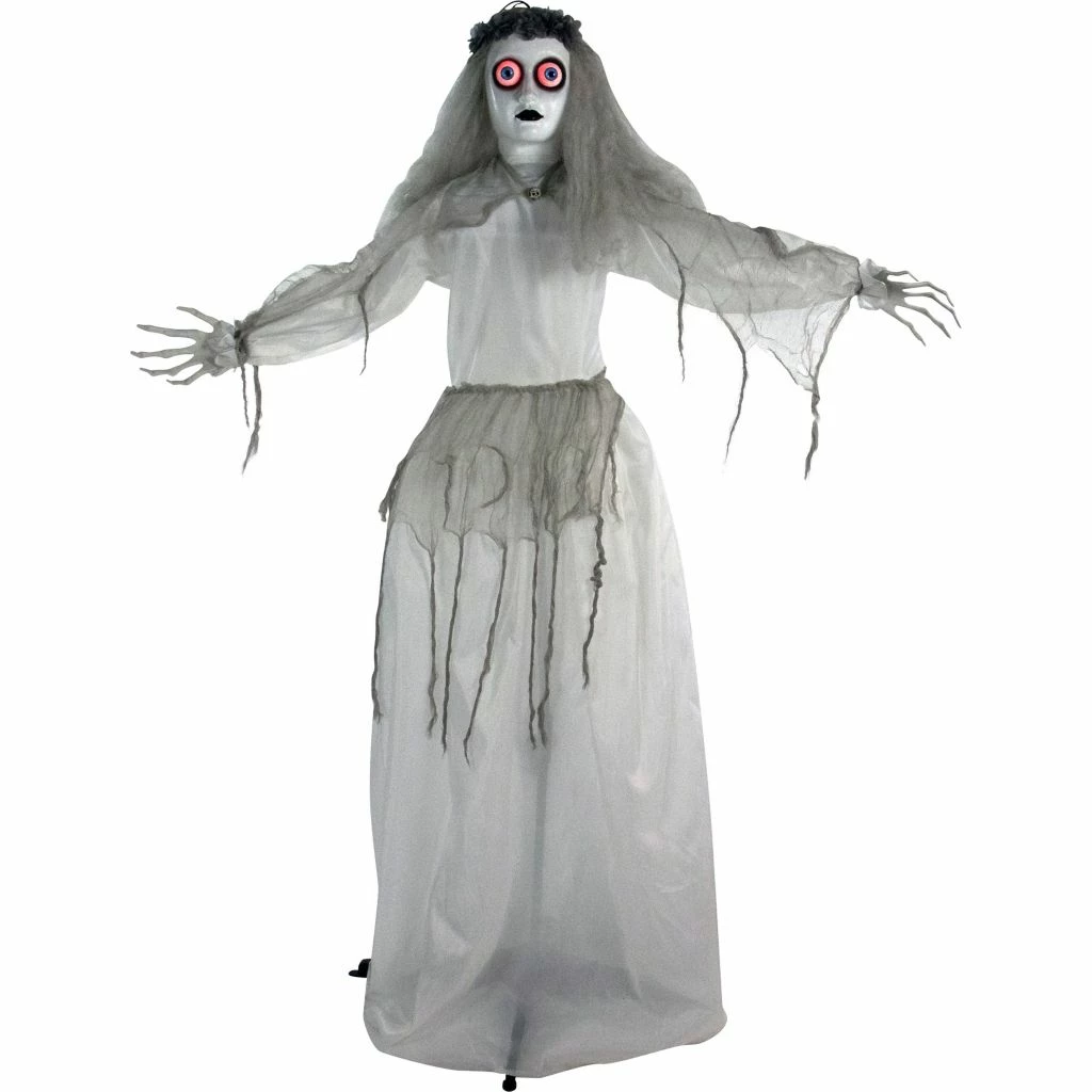 - 5 ft animatronic haunted bride Halloween decoration for indoor and covered outdoor display